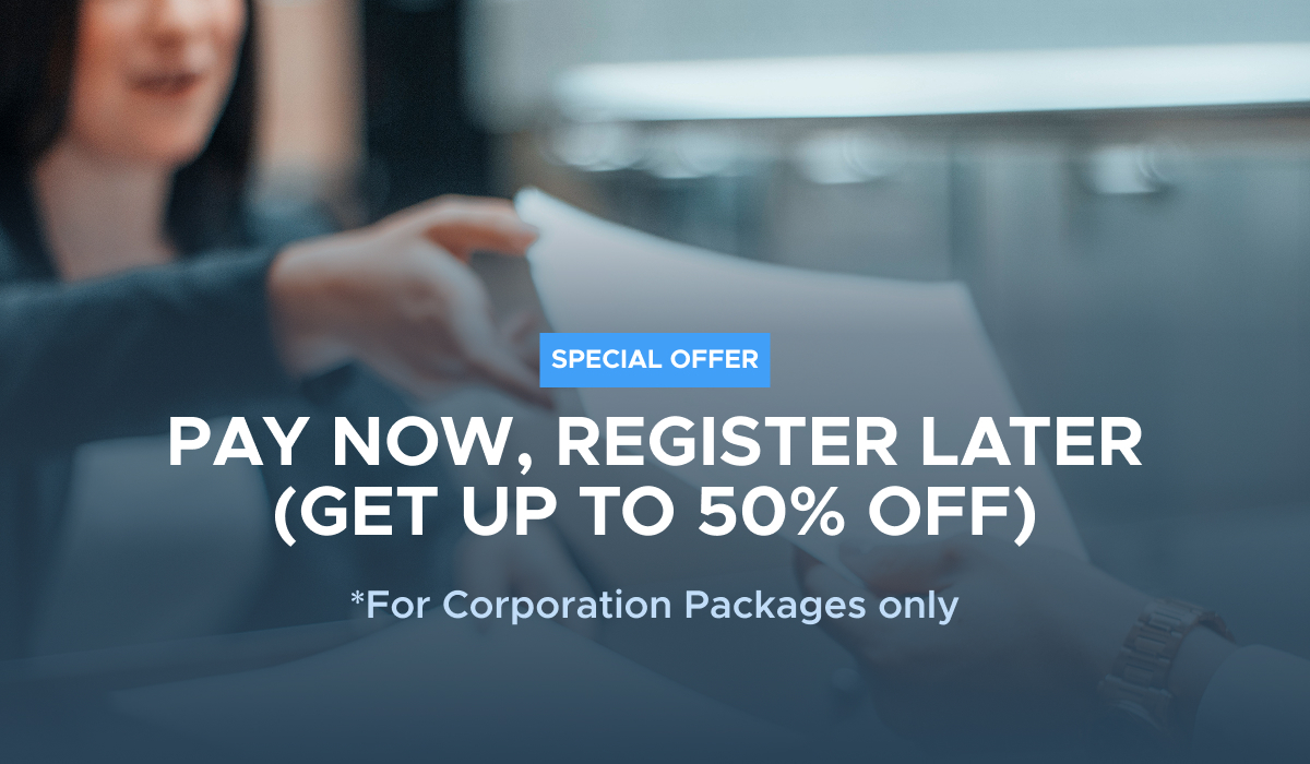 Reserve an early bird slot and enjoy big savings! Sign up for our Business Registration package this 2025 (to be processed next year), and save up to 50% off.